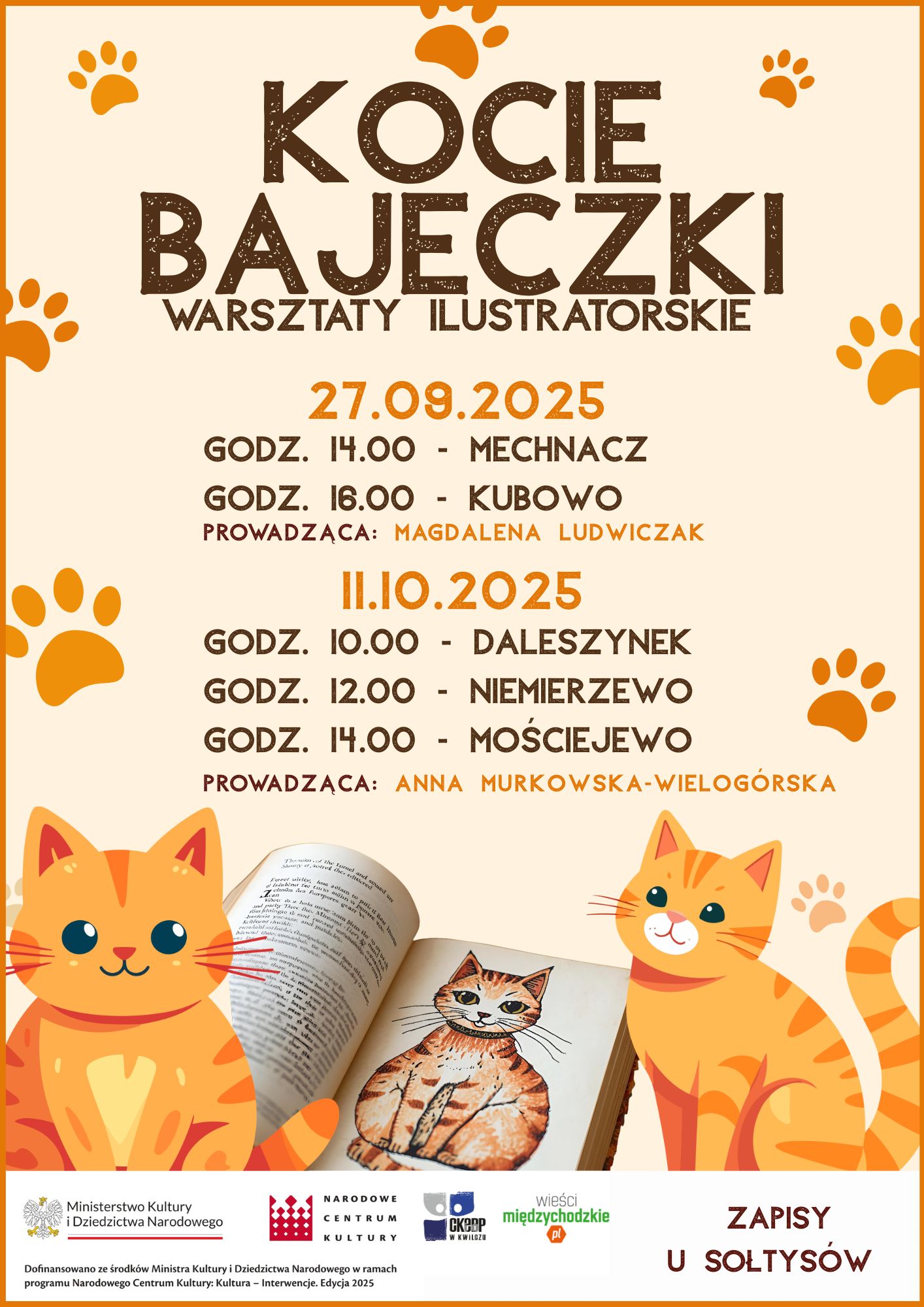 Podczas warsztatów prowadzonych przez Annę Murkowską-Wielogórską i Magdalenę Ludwiczak, dzieci poznały tajniki pracy ilustratora. W Mościejewie, Daleszynku i Niemierzewie powstały piękne okładki książek, a w Mechnaczu i Kubowie – składane książeczki z własnymi ilustracjami i krótkimi tekstami. Spotkania rozbudziły w uczestnikach wyobraźnię i pasję do tworzenia.